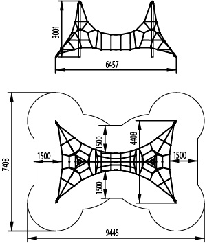 Ігровий канатний комплекс має форму піраміди, складається із металевої опори, що встановлюється методом бетонування та канатів, які натягуються на опору за допомогою спеціальних кріплень.