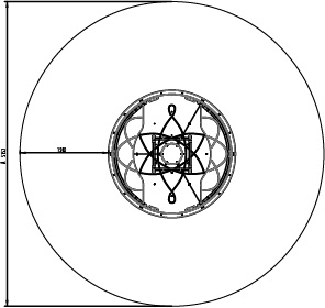 Вільна зона безпеки становить 1,5 м в усі боки від проєкції виробу.