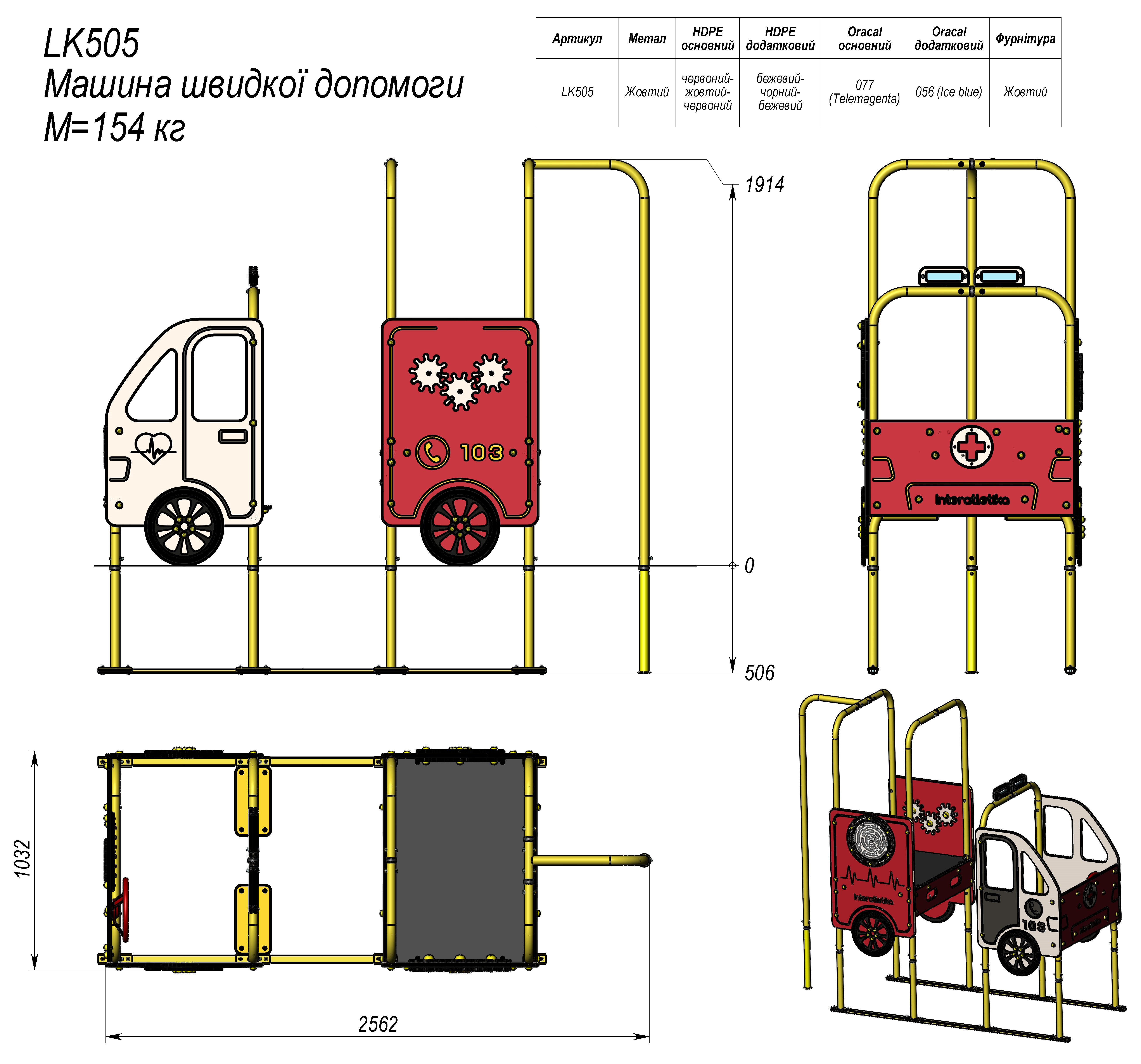 Детский игровой элемент Машина скорой помощи InterAtletika LK505 очень привлекает внимание детишек на игровой площадке. Этот элемент станет главным атрибутом среди игровых элементов. Яркая раскраска придает эффектный вид изделию, что делает его интересным на детской площадке.