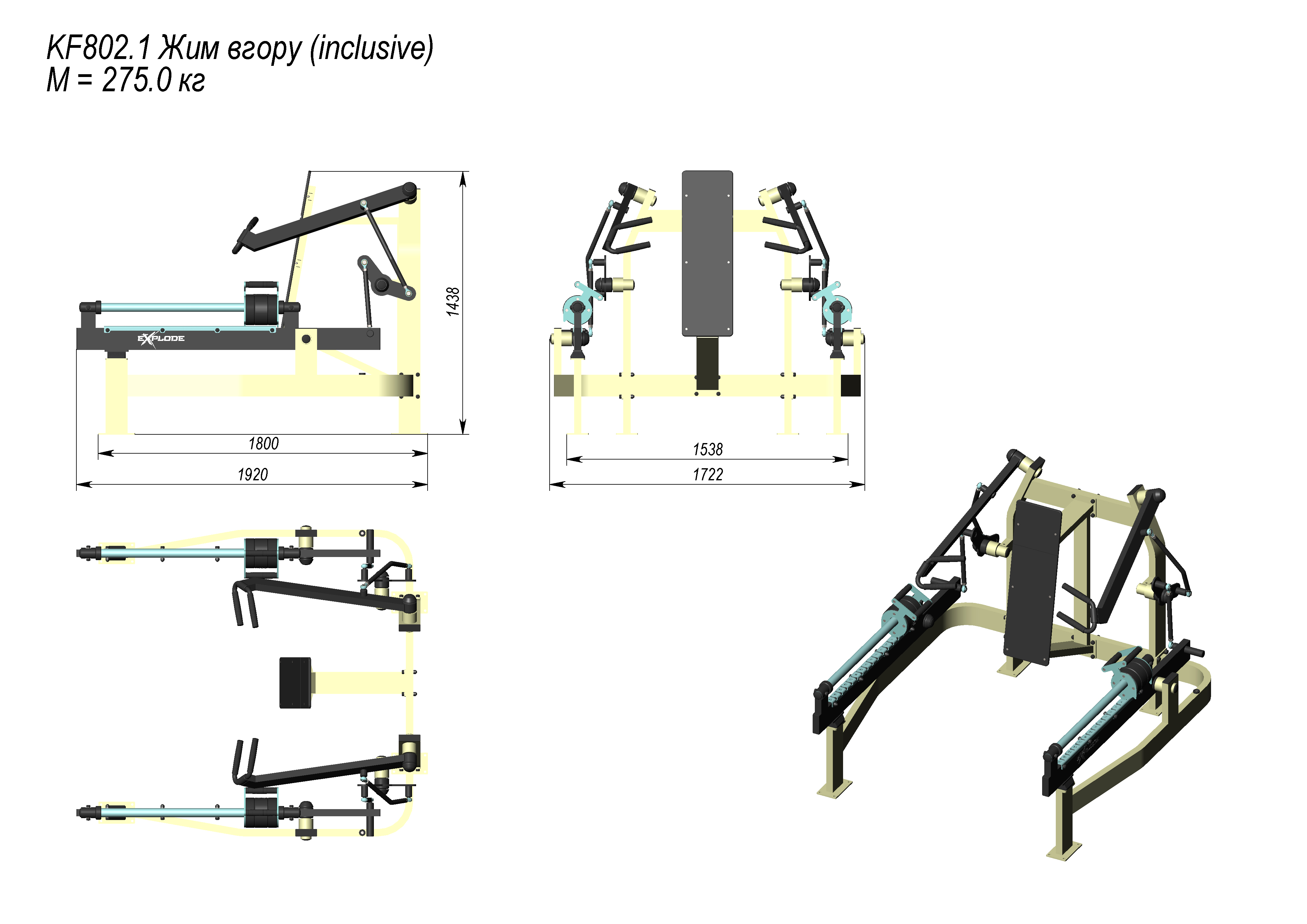 Тренажер со встроенными весами Жим вверх инклюзив KF802.1 предназначен для обработки мышечных групп груди и рук. Конструкция тренажера рассчитана на эффективную прокачку основных и изолированных мышц, исключается нагрузка на позвоночник. Благодаря автономным рычагам оборудования спортсмен имеет возможность отдельно тренировать левую и правую руку. Дискретная система погрузки регулируется вручную путем перемещения груза по направляющей, что позволяет настроить тренажер для максимально эффективной тренировки спортсменам с разным уровнем физической подготовки.